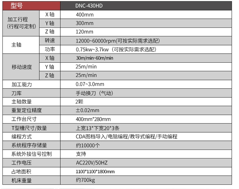采用60000轉(zhuǎn)高速主軸,能加工0.07-3.0mm之間的孔徑